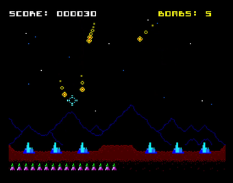 ALIEN ANNIHILATION (ZX Spectrum Next) to darmowa gra strategiczna typu shoot-em-up, w której musisz zestrzelić wrogie statki kosmiczne, aby chronić swoje miasto. Ta klasyczna gra arcade od Kevman3D jest inspirowana krytycznie uznaną grą wideo Missile Command.